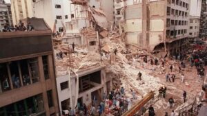 1994 年布宜诺斯艾利斯爆炸事件后 AMIA 犹太社区中心的废墟*-JNS*(来自维基共享资源)。