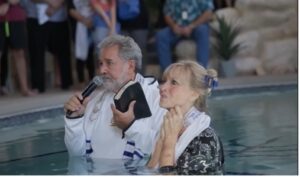 拉比与妻子已经步入浸礼池中